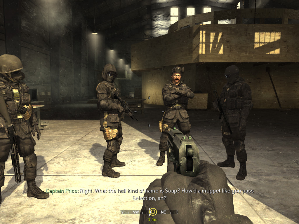 プレイヤーはイギリス軍の特殊部隊SASに配属されたばかりの新米,Soapとなる。このミッションはいわばCoD4のチュートリアルのようなものだ。基本的な射撃の仕方とMelee(近接戦)の仕方を教わり,その後Price大尉をはじめとする,SAS第22連隊の仲間に会うことに。ここで特殊任務の技能が試され,その結果によりプレイヤーに見合ったゲーム難度が言い渡される。