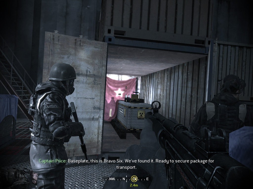 さっそくSoapの出番である。あるタレ込み情報をもとに,核兵器を輸送している貨物船を襲撃する。甲板の警備は薄く,内部への侵入はたやすいようだ。船内で核兵器の入ったコンテナを発見し,中にあった資料を入手すると,敵の航空機からの攻撃を受けて激しい爆発とともに船が大きく傾く。貨物船が沈没する前に脱出しなければならない。
