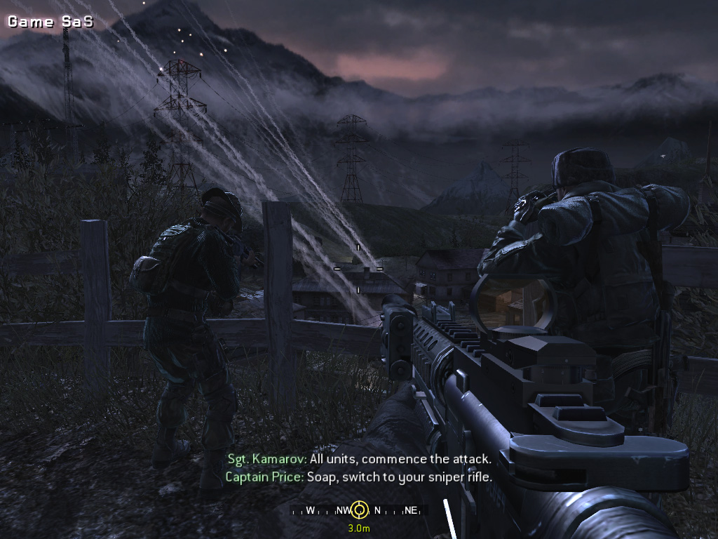 さてCoDシリーズのシングルプレイは,伝統的にスクリプトをふんだんに使ったドラマチックな展開がウリなわけだが,本作CoD4でもそれを踏襲している。この連載では,そんなダイナミックでシネマティックなCoD4のシングルプレイのキャンペーンの紹介,そして連載の後半では,めちゃめちゃ面白いマルチプレイについて扱う予定だ。