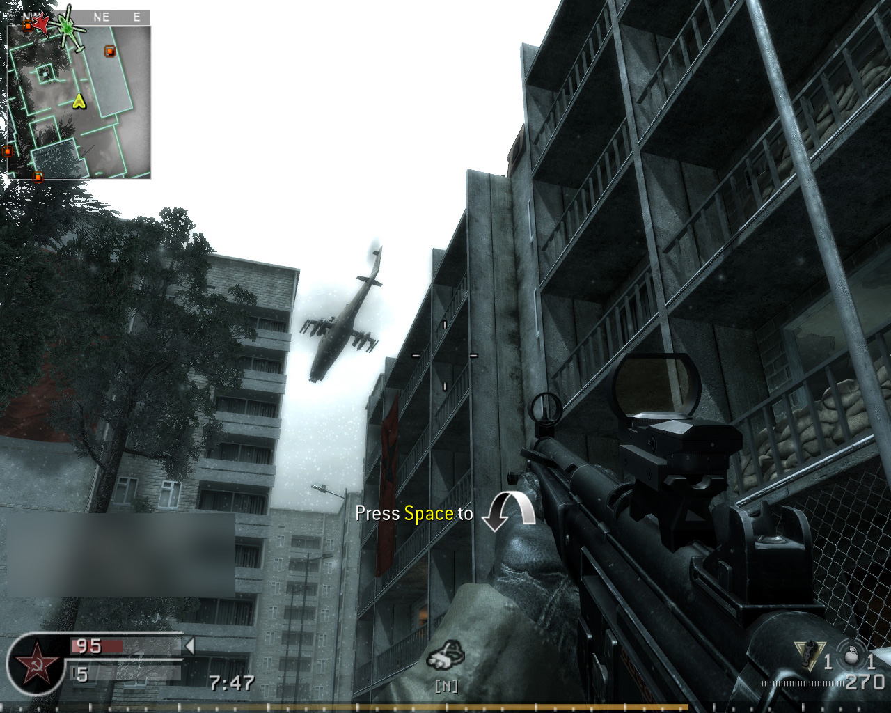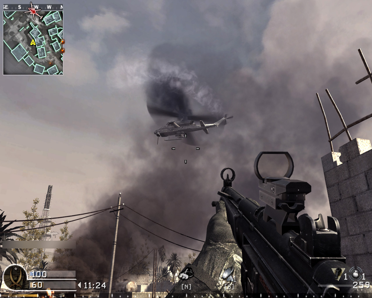AIが操作する攻撃ヘリが飛来し,上空から敵を掃射してくれる。ヘリは敵の銃撃によりダメージを受け,一定以上のダメージを受けると撃墜されてしまう。