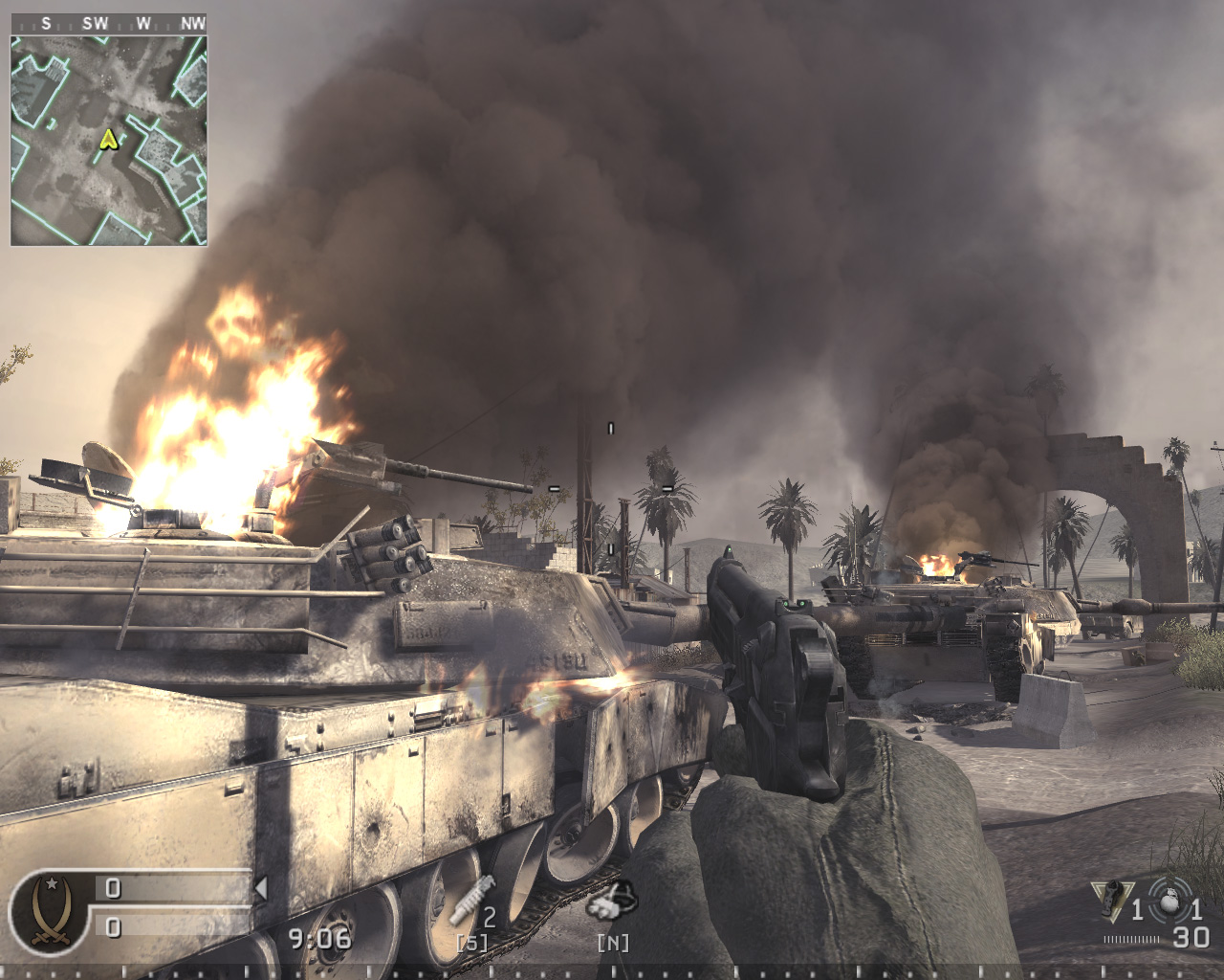 ランクの上下による違いは,武器の種類と身に付けている技能だけなので,実際はほぼプレイヤーの技量だけで勝敗が決まると言っていいだろう。ビークル類もないので,小難しいことなど考えず,とにかく走り回って敵を殺す,このシンプルさがCoD4の魅力である。