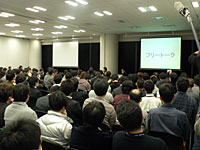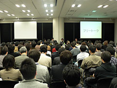 このセッションは,まさしくOGC 2008を締めくくるお祭りのような企画で,会場BとCの仕切りを取り払って前方中央にテーブルを置き,来場者のために合計220席ほどが用意されたものの,それでも若干の立ち見が出る盛況ぶりであった。ちなみに,仕切りの取り払い作業が遅れた関係で,セッションは20分遅れで開始された。