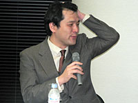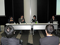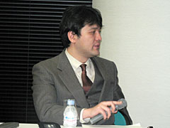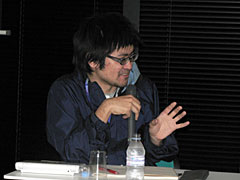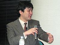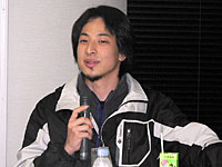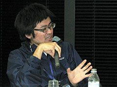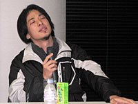 「2ちゃんねる」「ニコニコ動画」のひろゆき氏と,日本技芸所属の若手論客・濱野智史氏,ゲーム/コンテンツ事情全般に明るいIGDA Japanの新 清士氏,そして現在は早稲田大学で客員助教授を務めるコンテンツ行政通の境 真良氏が打ち揃って,境氏の仕切りのもと,セッション名に関係あるんだかないんだか微妙な問答が繰り広げられた。