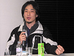 「2ちゃんねる」の成功理由を問われると,答えは「ほかに同じ機能のサービスがなくて,競争相手がいないからですね」で,そこから話題は「じゃあ,シェアを取りに行かねばならないニコニコ動画はどうなのか?」という方向へ展開する。ひろゆき氏は「もともとインターネットで動画を見る必要なんてないんですよ。画質も低いし」と,またも周囲を驚かす部類の正論から説き起こし,「それで,Webでしかできない楽しみ方を考えたうえで,みんなの“笑う姿勢”作りに努めたんですよ。いまからどの芸人が出てくるか分かってるとき,みんな笑う姿勢でいますよね?」と,ニコニコ動画の基本路線を説明した。