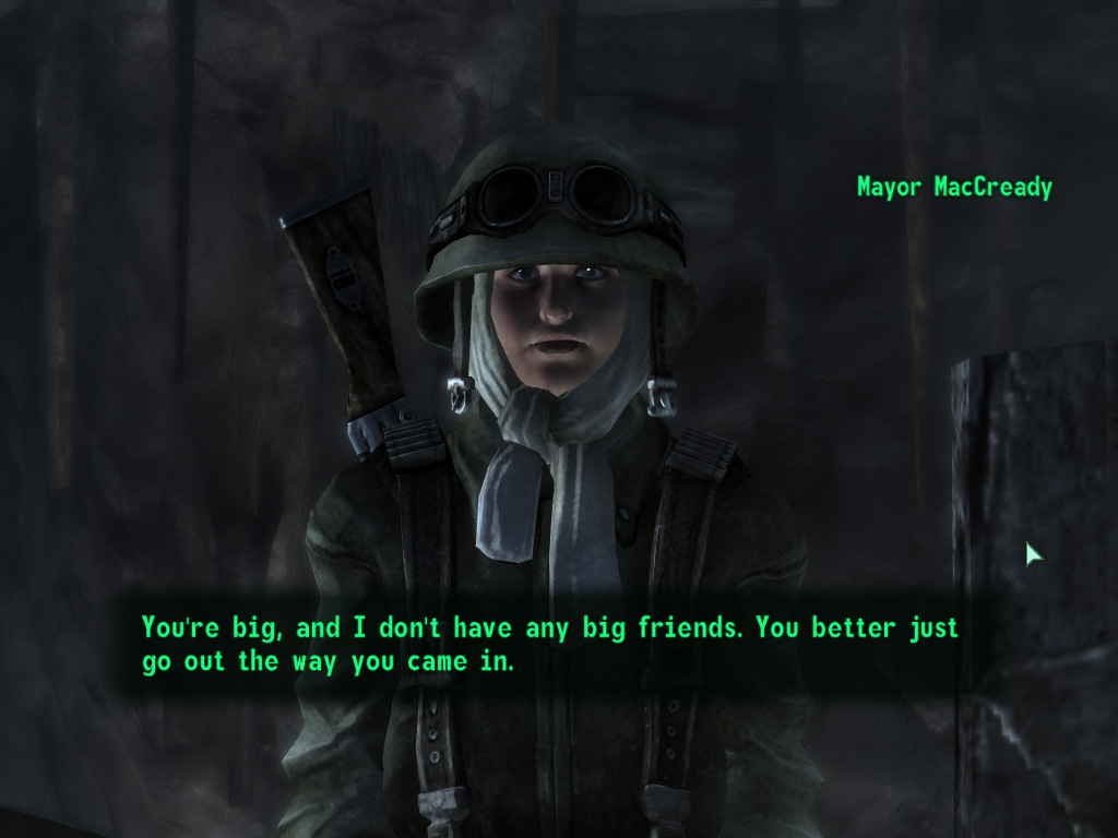 話を進めてみると,ここの子供が大人を信用しない理由は,奴隷商人がここの子供達の何人かをさらっていったからのようだ。そしてMacCreadyは,そのさらわれた子供達を,パラダイスフォールズというところから救出してきたら,あたしのことを信用すると言った。あたしは,その依頼をその場ですぐに引き受けた。