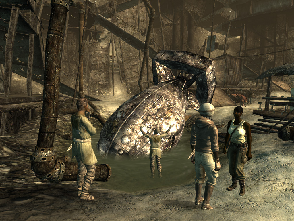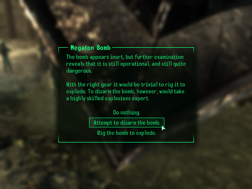 メガトンは大きなすり鉢型のクレーターの上に作られた町だ。その中央,最も低くなっているクレーターの中心には,戦時に落とされた巨大な不発弾が鎮座している。