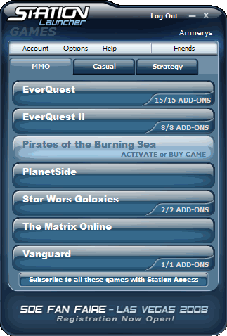 チャットやアップデートの確認も行える,SOE製タイトルのランチャー