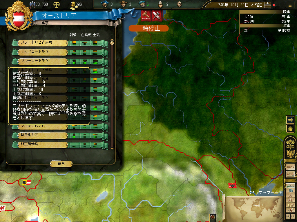当然ながら軍制改革にも着手,微妙に腹立たしいが,この時代最強の陸軍形式である「フリードリヒ大王型歩兵」に転換する。