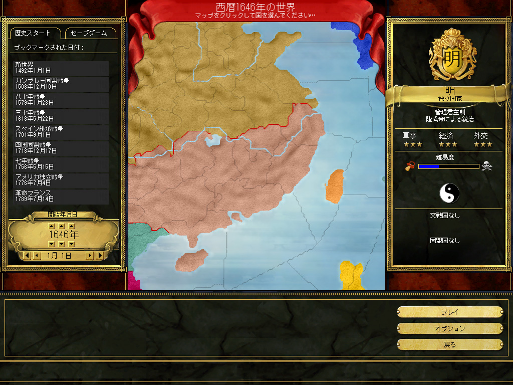 ゲームの開始時期だが,歴史的には南明が滅亡した年の正月スタートにするか,それとも南明が成立した直後にするかの二択といってよい。