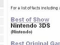 [2010/08/22 15:01]Best of E3 Awards,最優秀賞はニンテンドー3DS。Bethesda Softworksの「Rage」は最多の三冠を獲得