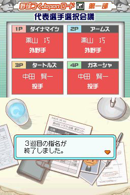 私は先日取材したときに野球つくJAPANロードでプレイしたけど,大家 健は初めての模様。で,行き帰り含めて10戦は軽くプレイしたんだけど,コレやっぱ面白いわ。