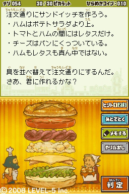 まずはタッチさせてゲイムに慣れてからRPG,というのが理想的な流れでしょう。そういう意味で,レイトン教授シリーズと応援団シリーズは,面白い,難しくない,自分のペースでプレイできる,そんな三拍子が揃っているのです。