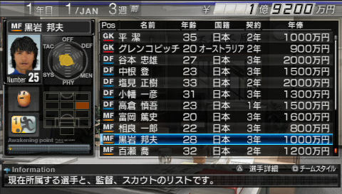 で,何が重いかというとプレイ感覚。今回の6は携帯ゲイム機ではシリーズ初めてのナンバータイトルなわけじゃない。だから,携帯ゲイム機に合わせて,もっとライトな仕上がりになると思っていたのよ。ニンテンドーDSで出た「サカつくDS タッチandダイレクト」みたいに。
