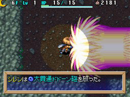 何がいいって,武器,盾が戦闘回数に応じて育つのがいい。シレンの醍醐味の一つに武器や盾に対する感情移入っていう部分があると思うんだけど,この武器,盾の成長システムによって,ちゃんと可愛く思えるのよ。武器や盾への感情移入度はシリーズで一番じゃないかしら。