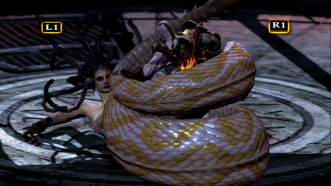 今まで映画のようなゲイムとして「アンチャーテッド」や「HEAVY RAIN -心の軋むとき-」を紹介してきたけど,GOW3の場合は,もはや“ゲイムのようなゲイム”だわコレ。見事なまでにゲイムならではのダイナミックさ,操作感。プレイしていて,映画とかほかのメディアに引け目を感じなくていいんだな,と心の底から実感したわ。