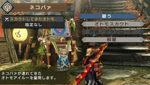「モンスターハンターポータブル 2nd G」でもそうだったんだけど,今回はより一層,私好みの表現が露骨になったわね。例えば,繰り返しになるけど私は太刀を使ってるのね。そしてネコ(編注:オトモアイルーです!)をお供に連れている,と。これはもう,ねえ。ネコと太刀がここまで大々的に共存するゲイムなんて,ほかにないわよ。