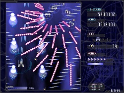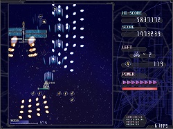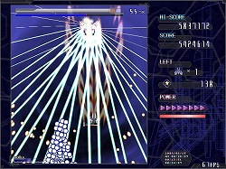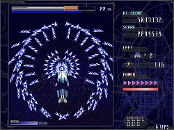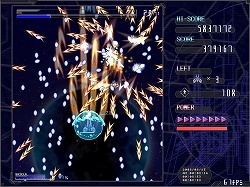 基本操作は方向キーによる移動と,ショット,シールド,低速移動の3ボタンで行う。ショットはいわゆる通常攻撃だ。ショットは敵を破壊したときに出現する,得点アップを兼ねたパワーアップアイテムを取ることで,段階的に威力と攻撃範囲がアップしていく。シールドは「シールドゲージ」を消費して,一定時間すべての敵機と敵弾を防ぐシールドを展開するというもの。