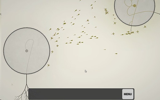 木がある程度成長し,飛び回る種の数が増えたら,よその小惑星を征服しにいこう。マウスの左クリックでドラッグすると,すべての種をほかの小惑星に飛ばすことができ,右クリックでドラッグすると種を一つずつ飛ばせられる。右クリックでドラッグする前に右クリックを数回押すと,押した数だけ飛ばす種を追加できるので覚えておこう。飛んでいった先に敵の木が生えており,敵の種が飛び回っていると戦闘になるので,最初は少数で偵察に行くのがいいかもしれない。