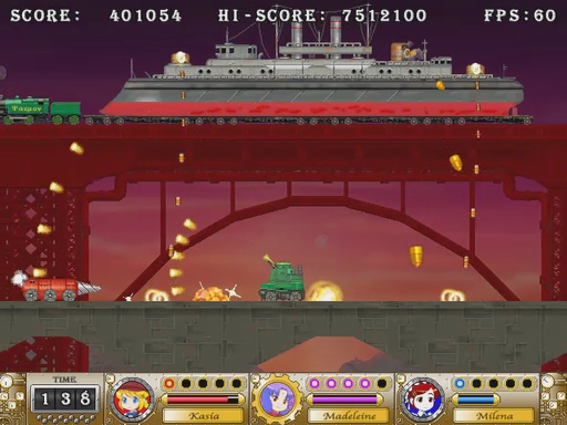 どのキャラクター(=武器)も一長一短だが,基本的には威力の高い武器を担当するキャラクターほどライフが少なく,射程距離も短くなる傾向があるので,自分のプレイスタイルと腕前に応じたキャラクター選びをしておきたい。性能のバランスを考えると,一発の威力は低いものの攻撃範囲が広く,雑魚を蹴散らすのに向いているマデレーンの散弾砲を,ボス敵などとの短期決戦用に,威力が高く射程が短いミレナの榴弾砲,もしくはハンナの火炎砲と組み合わせるのが無難だ。