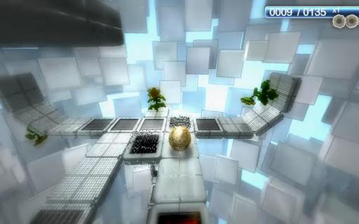 またゲーム内では,ボールの接地面に対して下方向に重力がかかっており,足場がない場所からステージ下に落下すると,失敗となってステージの最初からやり直しとなる。しかし,上述したように本作ではグルグルと天地が入れ替わるため,うまくステージを回転させてから飛び降りることで,“それまでは裏側だった場所”に行けるようになるというのがポイントだ。