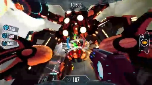 理由はいくつかあるが,その1つは雨あられと襲い掛かってくる大量のドローンとTitanからの攻撃がかなり激しいのに対し,こちらの武装が(少なくとも初期状態では)かなり貧弱なこと。火力が低すぎるため,まともにやりあっていたら制限時間内にTitanを撃破できないのだ。ステージ上には攻撃力やジャンプ力をアップさせるアイテムがあるので,まずは確実にこれらを手に入れよう。