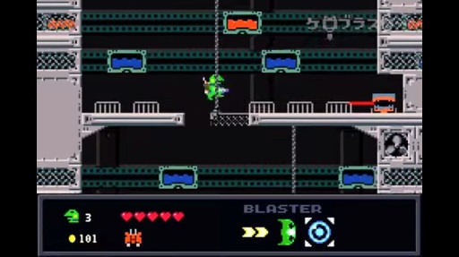 カエル君の出張先には何やらヘンテコなモンスターがたくさんおり,カエル君自慢のさまざまな武器(ブラスター)で戦いながらステージクリアを目指すというのが本作の内容。ほのぼのとしているように見えるが,割と物騒な仕事である。カエル君の操作方法は,方向キーの左右で移動,Zキーでジャンプ,Xキーで攻撃,A/Sキーで武器の変更というもの。また,上キーを押しながらの攻撃で,真上を狙ってブラスターを撃てる。