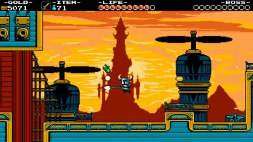 というわけで,プレイヤーは主人公のShovel Knightとなって,魔女の陰謀を食い止め,相棒のShield Knightを救い出すための冒険を繰り広げることに。Shovel Knightの武器はその名のとおりシャベル。シャベルとスコップの違いすらよく分からない筆者でも,仮にも騎士として,ちょっとそれはどうなのよと思わないでもないが,穴を掘ってよし,敵を殴ってよしの万能道具として考えれば,これはこれでアリなのかもしれない。