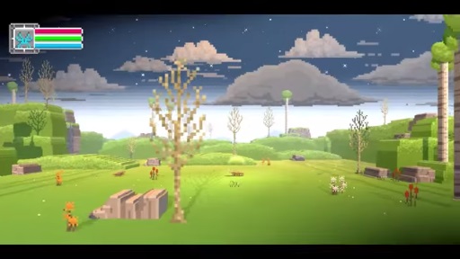 本作でまず目を引くのは,ピクセルアート風の3Dグラフィックスで描かれた,シンプルながらも美しいグラフィックス。ゲーム世界には昼夜の概念があり,時間と共に風景が移り変わっていく。地形が毎回ランダムに生成されるなど,ローグライク的な要素が多少あるものの,本作は基本的にはストーリーベースのアクションゲームで,プレイヤーはここで飢えや外敵と戦いながら,鹿として生存競争を行うことになる。