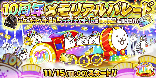 2012年に配信がスタートした「にゃんこ大戦争」は,日本を侵略する「にゃんこ軍団」を率いて,九州を起点に各都道府県を制圧していくタワーディフェンス系のゲームで,簡単操作ながら戦略性が求められ,さらに,経験値を貯めてにゃんこを育成したり,新たなにゃんこを仲間に入れたり,お宝を集めたりといったいろいろな要素も用意され,そのうえ,にゃんこ達に癒されてしまうという人気タイトルです。どのようなイベントなのかについては,「10周年なにかが起こる…?」とほのめかされているだけですが,スタートは11月15日11:00。緊張して待ちましょう。