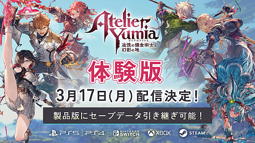 3月21日の発売が予定されているコーエーテクモゲームスの新作「ユミアのアトリエ 〜追憶の錬金術士と幻創の地〜」(PC / PS5 / Xbox Series X|S / PS4 / Xbox One / Switch)が第4位にランクイン。