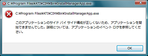 Windows Vista版ATI Catalystの場合,Windows XP版では発生する「cli.exe−アプリケーションエラー」(※詳細は