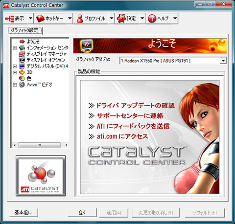 (4)これでATI Catalyst Control Centerが起動する。見た目でピンと来た人もいると思うが,Windows XP版とまったく同じデザインだ