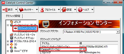 (5)「インフォメーションセンター」にある「グラフィックソフトウェア」を選択。これで,ATI Catalystのバージョンを確認できる。しばらくバージョンアップしていなかったときなどは,ここをチェックしておこう