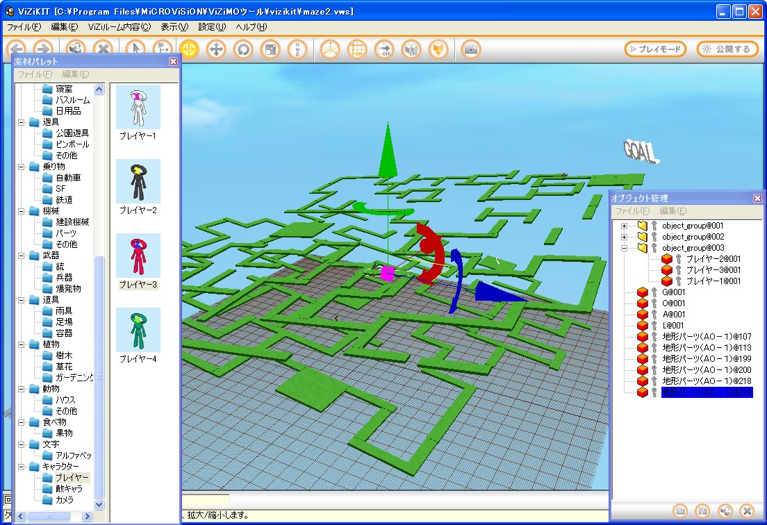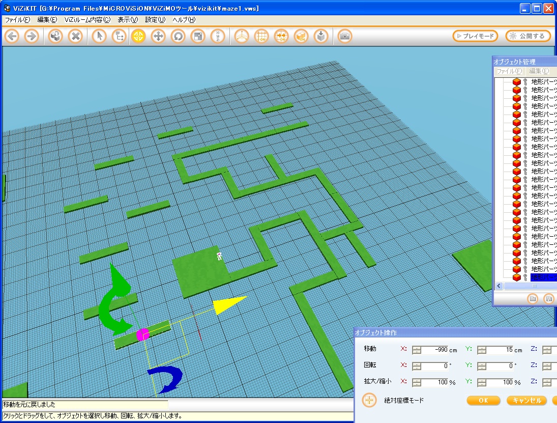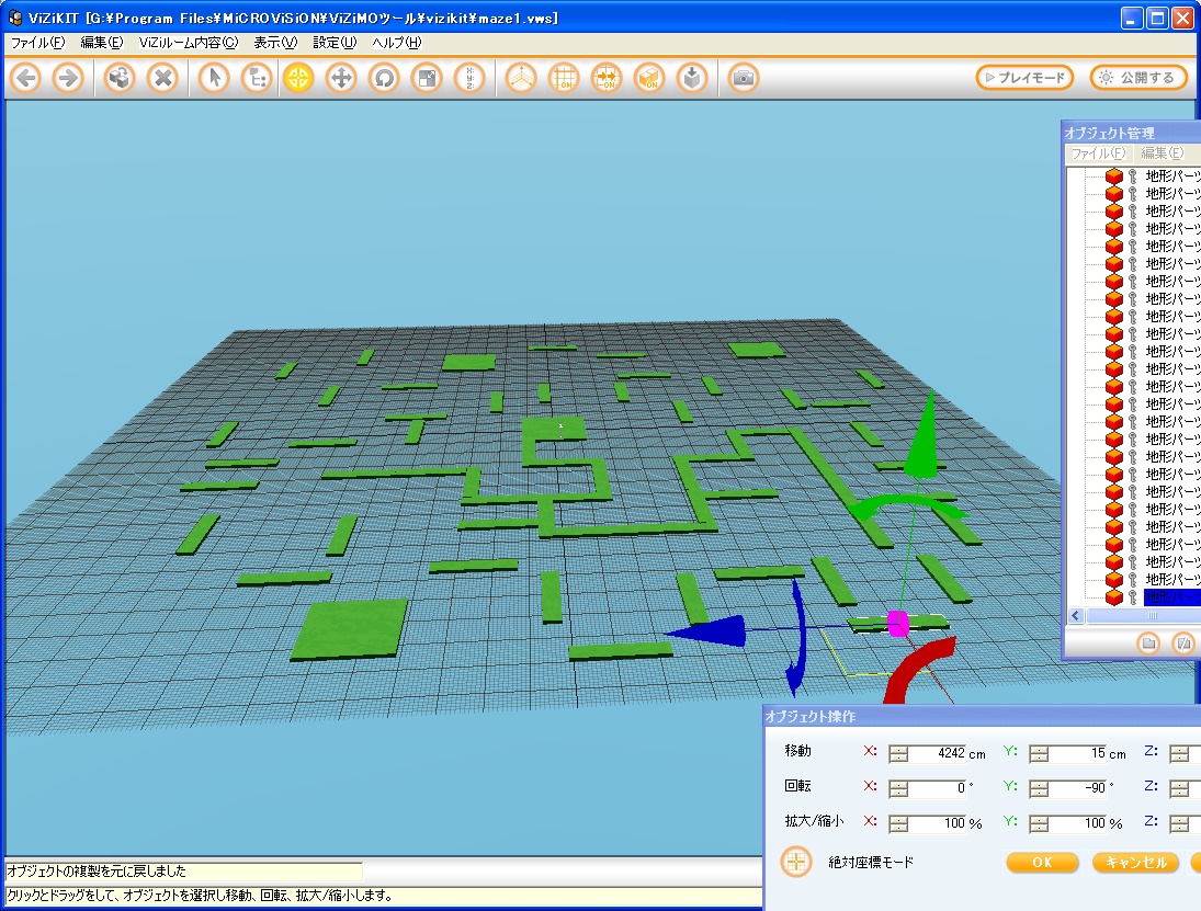 さて,適当に作ってみた迷路は,想定より道が狭くなって,私の作るルームとしては,難易度は少し高めなものになりました(注:最終的に全体を少し拡大したとのこと)。詳しくは,ViZルームでご確認ください。