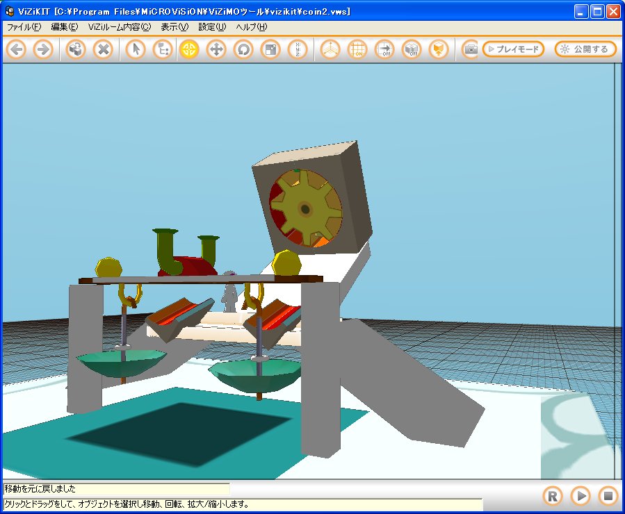 ただ,ちょっと欲張ったり,ここから進んである程度まで行くと,ViZiMOではちょっとしたことをするにもたくさんの手順が必要になることに慣れてもらうしかありません。ViZiMOは,ものごとをまとめつつ個別に処理するということが不得手なのです。オブジェクトの配列はあるけど,インデックスがないといえば分かる人には分かるでしょうか。
