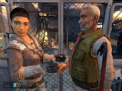 ![]() Half-Life 2シリーズで最も評価されるのは,やはりデザインやアニメーションを含めたキャラクター技術全般だろう。ストーリーやキャラクターとのインタラクションを重視しているわけだが,映画を真似ただけのような嫌味はまったくない。あくまでゲーム的演出手法の一つとして結実している |