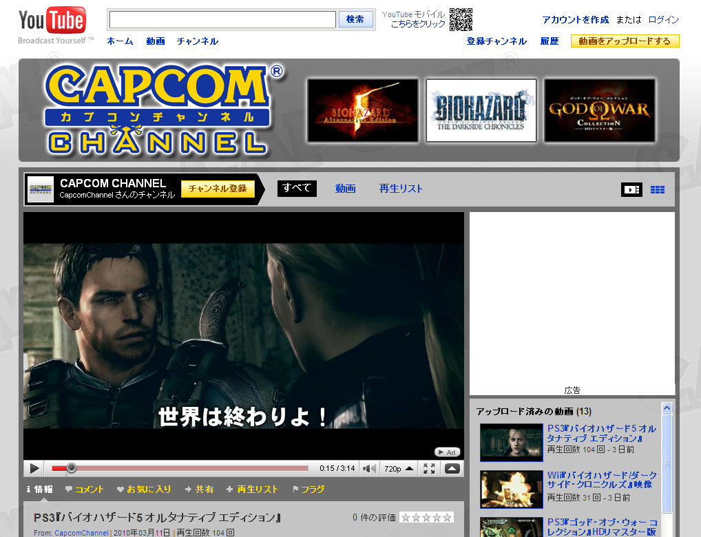 カプコン,YouTubeに公式チャンネルをオープン。最新映像など配信