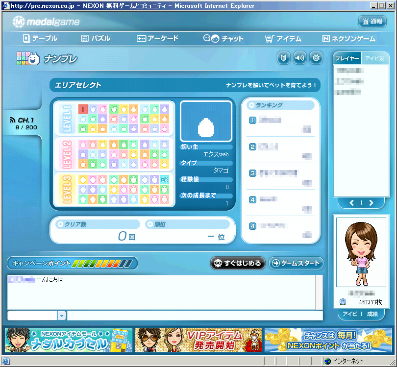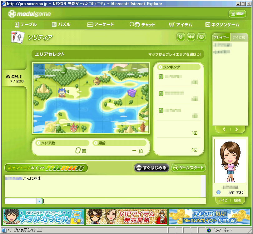 ネクソンの無料ゲーム集「メダルゲーム」,7月10日にロビー一新