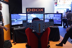 これはカナダのハードメーカー,D-BOX Technologiesが開発する体感(インテグレーター)モーションシステム(IMS)で,プレイ中のデータソースから送られてくる路面や状況の情報を計算し,その衝撃,モーションを忠実に同期させるというもの。CEDIA(カスタム エレクトリック デザイン インストーラー アソシエイト)という賞を受賞している。体感モーションとは,プレイステーション2などのコントローラに搭載されている振動装置を想像してもらうと分かりやすい。