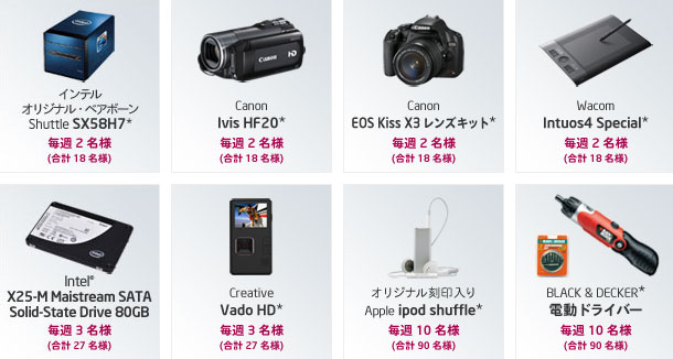 Core i7を買うと抽選で豪華プレゼントの当たるキャンペーン,6月3日スタート。先着7777名にはもれなくケータイ用コンテンツも