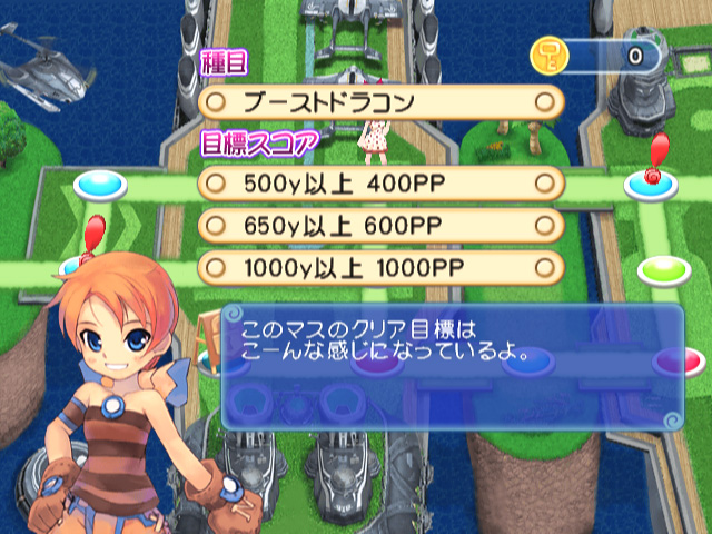 O.B.など気にせずに風船を割れればよいバルーンクラッシュがWii版パンヤの初心者向けなら,ブーストドラコンとアプローチダーツは風向や風速を計算に入れた正確なショットが要求されるという,ややベテラン向けのゲームといえる(ような気がする)。