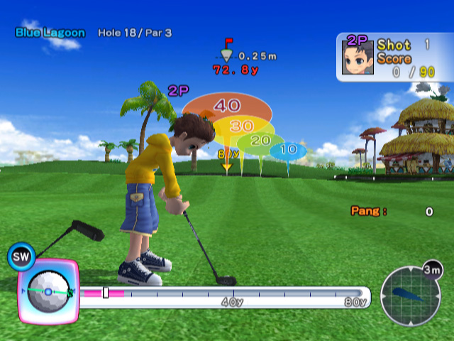 どんなパンヤ初心者でも狙えそうな,この距離とサイズを外したときの空しさといったら。悔しさのあまりWiiリモコンをふっ飛ばさないよう,ストラップは手首にしっかりと