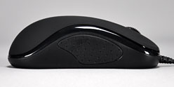 「つまみ持ち」をしてみると,まず,本体両サイドに貼られたラバーグリップのおかげで指がズレにくいのが好印象。また,指の曲げ具合にもよるが,ラバーグリップのマウス前方よりの部分をつまんだとき,手のひらに本体がほとんどぶつからないのも,「つまみ持ち」のプレイヤーには重要なポイントといえる。力の込め方がわずかに変わっても,マウス側がそれに対応してくれる感じで,操作感は相当に快適だ。