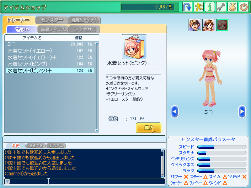 「モントレ」トレーナー装備のセット販売開始。水着アバターも登場