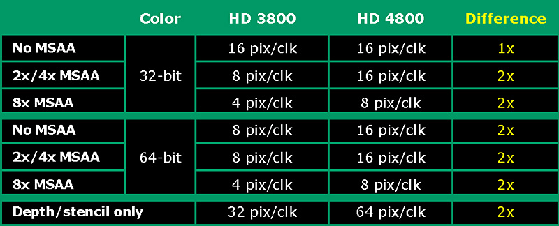 Render Back-Ends(レンダーバックエンド),一般的なGPU用語でいうところのROPユニット(ROP:Rednering Output Pipeline)もHD 4800シリーズで大きく改良が施された部分だ。順を追って解説していこう。