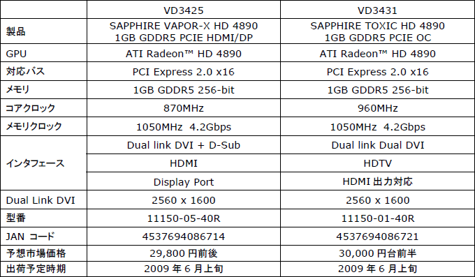 オリジナルGPUクーラー採用のSapphire製HD 4890が2モデル発売に