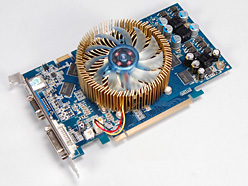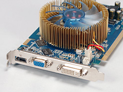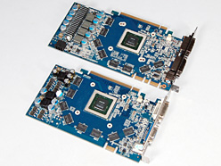 補助電源コネクタを持たない仕様というと,最近では消費電力59W版「GeForce 9600 GT」(以下,9600 GT)が話題を集めたが,PCI Express x16の電力供給仕様となる75W以下で動作する,より上位のGPUを搭載したグラフィックスカードが登場するわけだ。