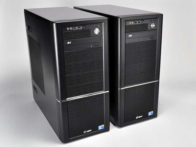 今回は,Project Whiteに無理を言って,表1にそのスペックを示したように,GA7J-F23/EX1とほとんど同じハードウェア構成をG-GEARミドルタワーケースに組み込んだ特別モデル「GA7J-E22/EX1」も用意してもらったのだが,並べて比較しても,外観に違いはなかった。