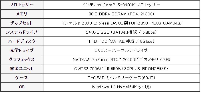 G-GEAR,RTX 2060搭載のミドルタワーゲームPCを発売