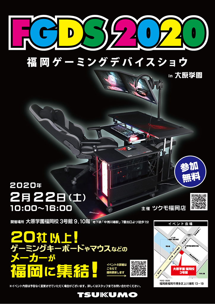 ツクモ,ゲーマー向け周辺機器を体験できる「福岡ゲーミングデバイスショウ2020」を2月22日に開催
